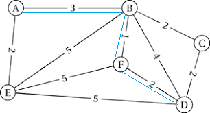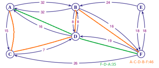 - b) Déterminer le plus court chemin de A à F. A-C-D-B-F:46