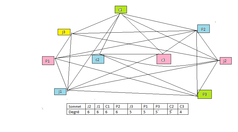 - Combien de couleur minimum nécésaire pour colorer ce graphe nombre de couleur vaut 3